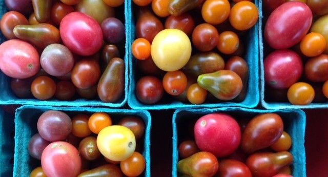 Though there are plenty of other things to assist in keeping me forward focused, and a few of them are pictured above! Our CHERRY TOMATO pints, with five varieties of colorful and flavor-rich gems, are kicking it up! But even with what I thought was a market’s worth of pints last week, these beauts sold out in a couple hours! So, come early for these sugar-sweet babes!